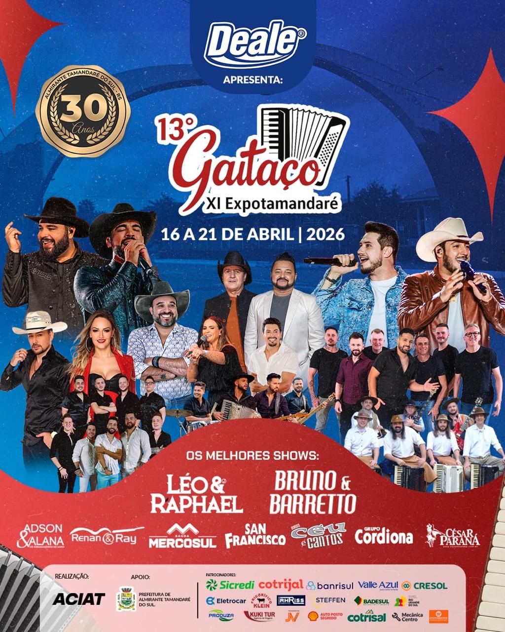 Inicia nesta quinta-feira, 16 de abril, e se estende até a terça-feira 21 de abril, o 13º Gaitaço e a XI Expotamandaré, no município de Almirante Tamandaré do Sul, trazendo uma programação diversificada com tradição, música e rodeio.